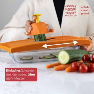 Krojenie warzyw za pomocą zwykłego noża nie należy do najprzyjemniejszych zadań. Przygotowanie potraw może sprawiać pewne trudności, dlatego warto korzystać z akcesoriów, które znacznie ułatwią nam ten proces. Szatkownica do warzyw i owoców od V-Hebel to prawdziwy dowód na to, że gotowanie może być przyjemne. Użytkowanie tego narzędzia pozwoli nam na o wiele szybsze tworzenie potraw. Noże ze stali chirurgicznej i nierdzewnej z kolei sprawiają, że krojenie warzyw i owoców staje się prostsze i nie wymaga to nakładu dużej energii. Szatkownice do warzyw Borner są niezbędne w celu przygotowania sałatek, surówek i wielu innych potraw.
